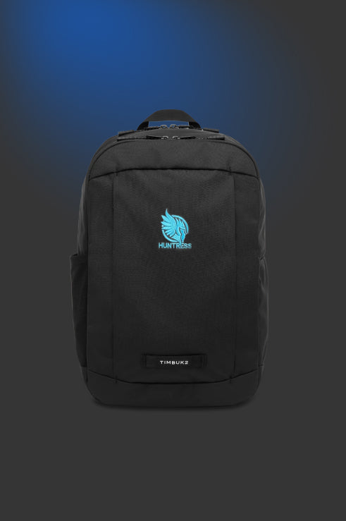 Carry your laptop, notebooks and other essentials in style with this black backpack from Timbuk2. Features a teal Huntress logo.